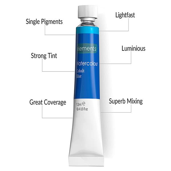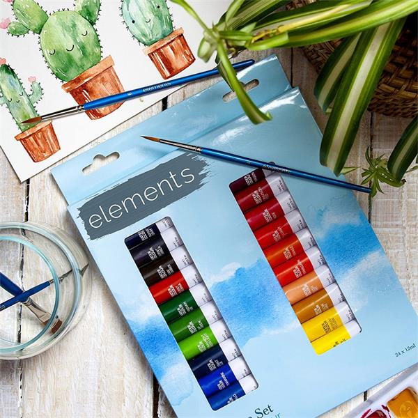 The Elements Watercolour Paint Set contains a range of 24 x 12ml vibrant colour tubes. The radiant colours are transparent, vivid & highly pigmented so that they can go a long way. These watercolours feature a smooth buttery consistency that allows you to easily mix and blend to create an endless array of colours.